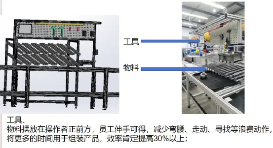 以上信息收集好后就可以据此设计工作台了,工作台的设计需要统筹考虑设备、人员、物料、信息等,以人为本,方便员工拿取物料、工具,让员工在一个最舒服和高效的工作条件下完成工作。