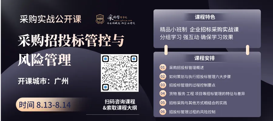 (1)采购方式:推动招标、询比价、议价和竞价四个采购方式的合理选择和运用;