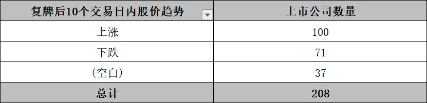 整体上看,收购事件对于上市公司的股价形成利好,收购事项复牌/公告后10个交易日内,超过半数的上市公司股价上涨,将时间拉长到20个交易日,结论不变,亦是有超半数的上市公司股价上涨。