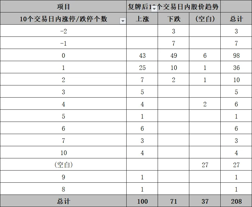 控制权变更事宜公告后10个交易日内股价上涨上市公司中,股价涨停个数从0个到10个不等。