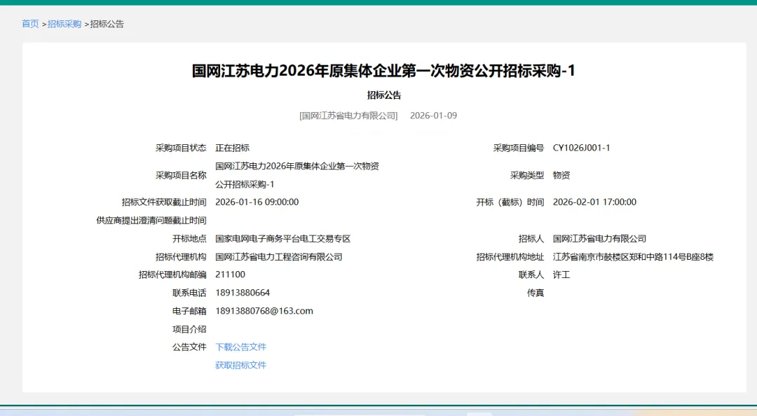 国网江苏电力2026年原集体企业第一次物资公开招标采购-2