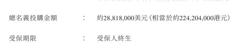 相当于用少量本金就撬动了大额保障,总名义投保金额高达2.24亿港元(约2881.8万美元),而且是终身受保。