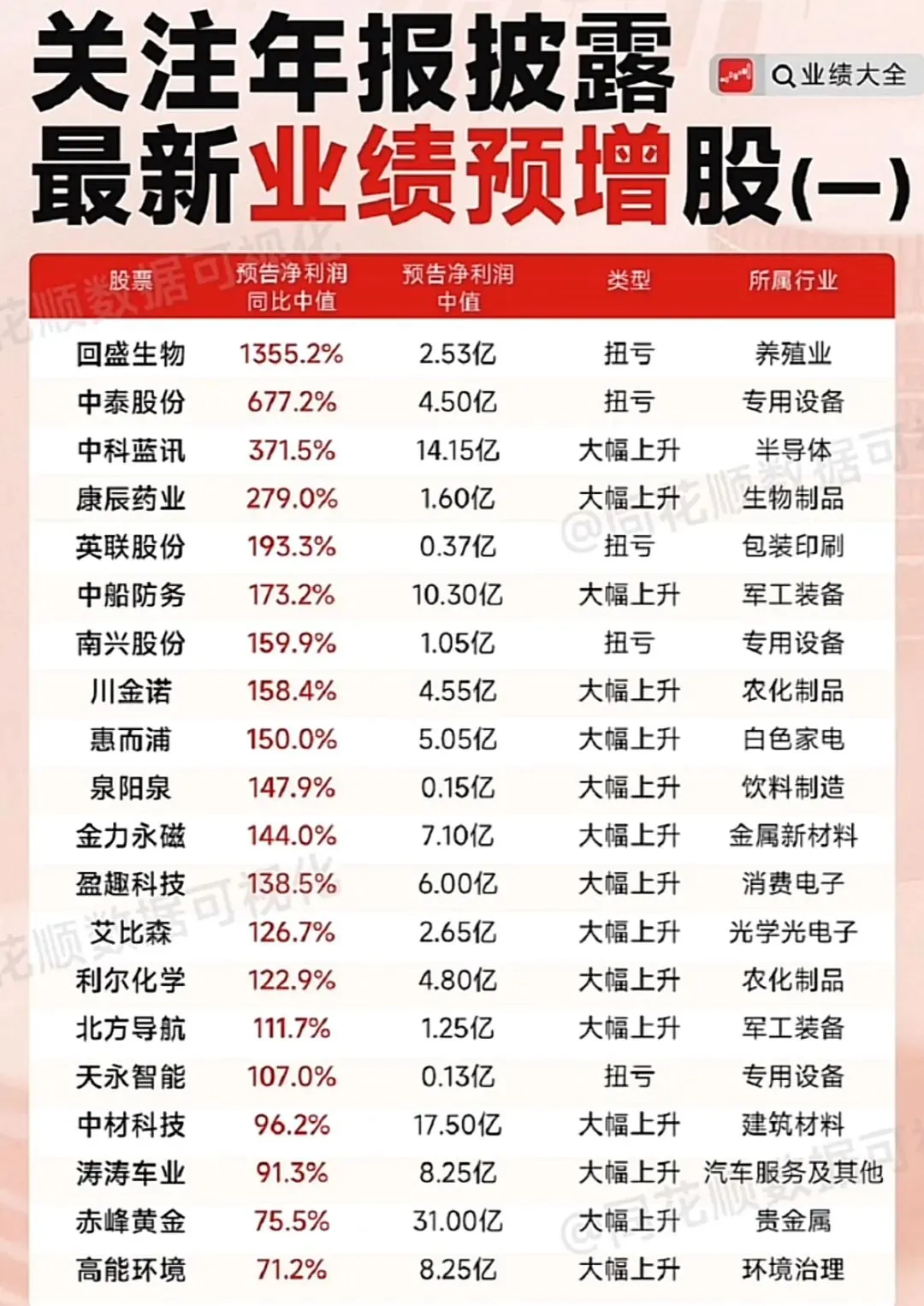 这类公司通常是由于行业周期回暖、成本控制改善或非经常性损益实现了业绩反转。
