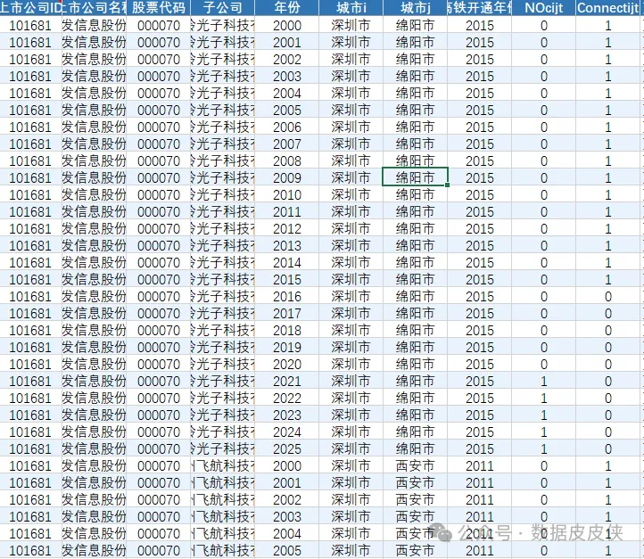 上市公司母公司-子公司间高铁开通数据(2000-2023)
