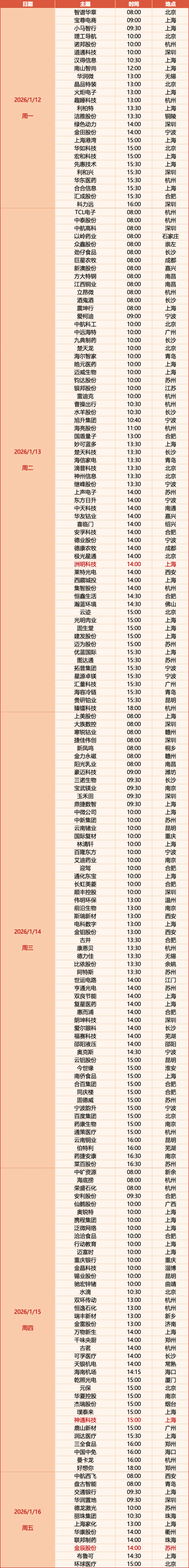 2026 年 1 月 12 日 - 16 日,A 股上市公司调研活动将密集展开,覆盖全国多区域、多热门赛道,成为洞察行业动态与企业价值的重要窗口。本次调研活动呈现区域集群效应显著、行业热点聚焦的特征,涵盖科技、消费、医药、新能源、金融等多个核心领域,为市场提供了丰富的产业观察视角。