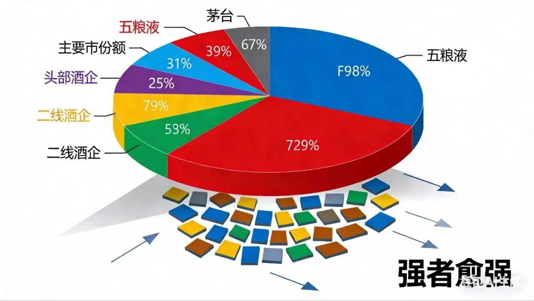 与二线酒企的困境形成鲜明对比,头部酒企依旧稳健。贵州茅台2024年总营收预计1738亿元,同比增长15.44%;归母净利润857亿元,同比增长14.67%,即便面临产品价格波动,仍通过主动调整实现增长目标。行业资源持续向头部集中,2024年上半年,茅台、五粮液等前六大酒企营收占20家上市白酒企业的85.3%,净利润占比超92.3%,“强者愈强”的分化格局愈发明显。这种分化源于品牌价值、产品结构与渠道布局的差距——超一线与一线酒企占据高端市场主要份额,而二线酒企在次高端及大众市场,既面临头部下沉挤压,又受消费需求疲软冲击。