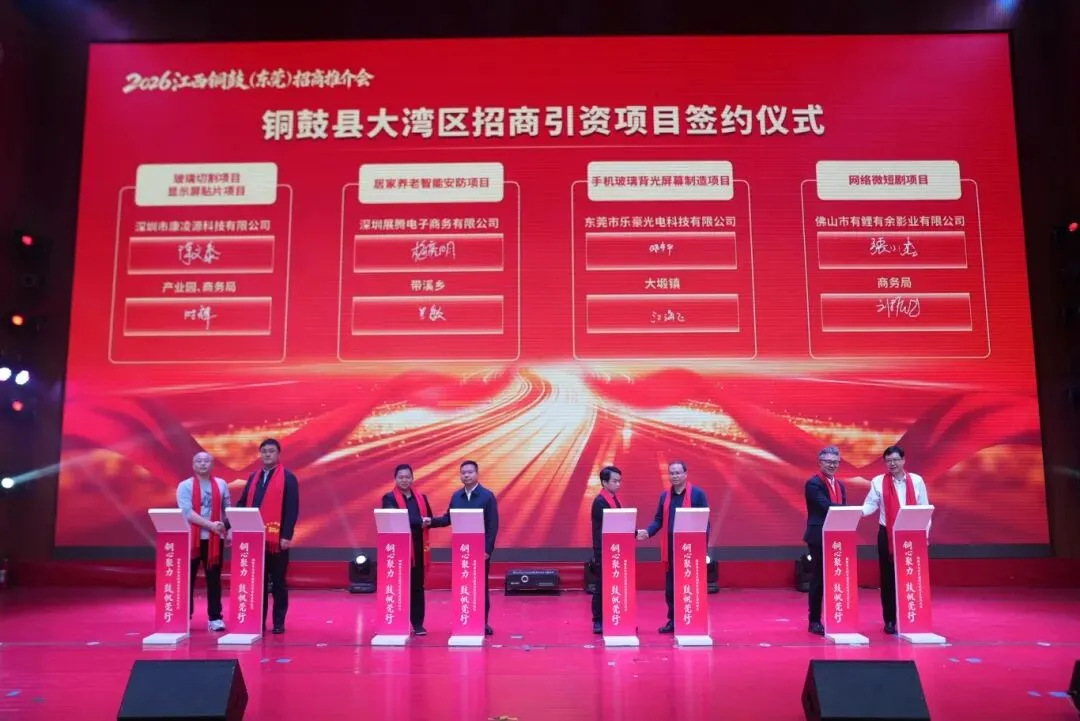 在项目签约环节,由县产业园、商务局共同引进的深圳市康凌源科技有限公司投资的玻璃切割项目、显示屏贴片项目,由带溪乡引进的深圳展腾电子商务有限公司投资的居家养老智能安防项目,由大塅镇引进的东莞市乐豪光电科技有限公司投资的手机玻璃背光屏幕制造项目,由县商务局引进的佛山市有鲤有余影业有限公司投资的网络微短剧项目成功签约,计划总投资额近五亿元。项目涵盖多个符合铜鼓产业发展导向的领域。据悉,这批项目均是我县部署开展招商引资“强基双攻”行动后取得的重要阶段性成果,体现了精准招商的显著成效,将为县域经济注入新的强劲动力。