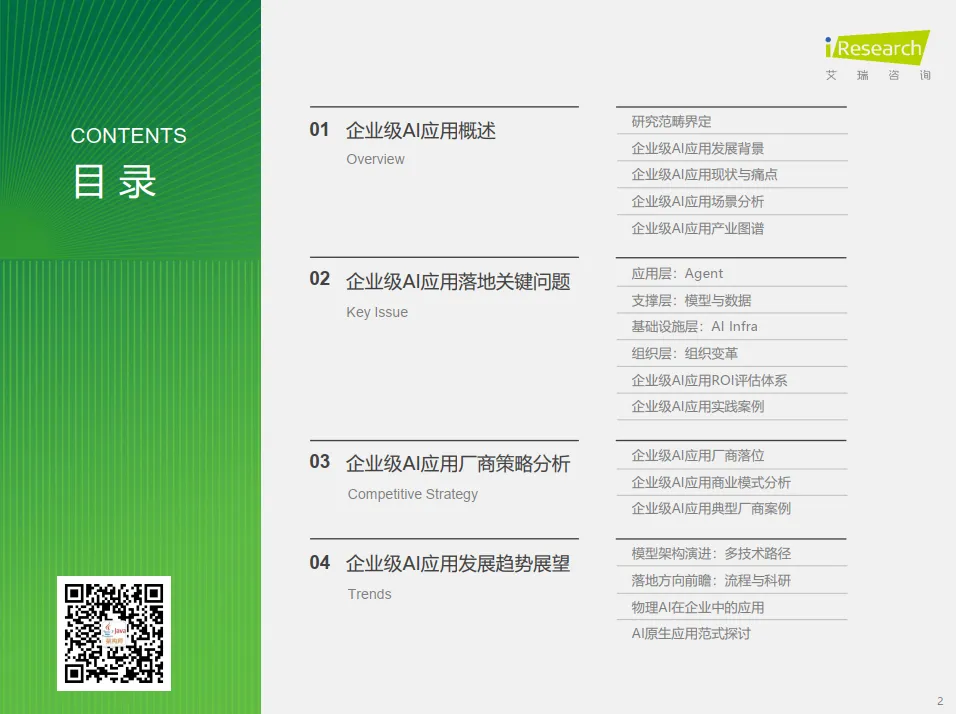 报告的价值在于其系统性框架:从应用层(Agent)、支撑层(模型与数据)、基础设施层(AI Infra)到组织层(组织变革),构建了企业级AI落地的完整图谱,并辅以ROI评估体系和实战案例,为企业的AI战略提供实操指南。