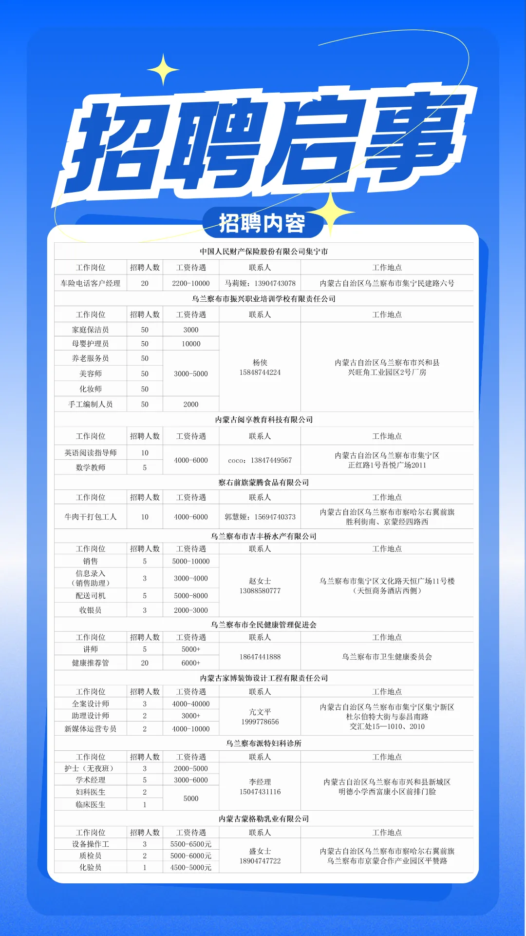 (第二期)2026年就业促进行动重点行业企业用工需求清单(乌兰察布市)