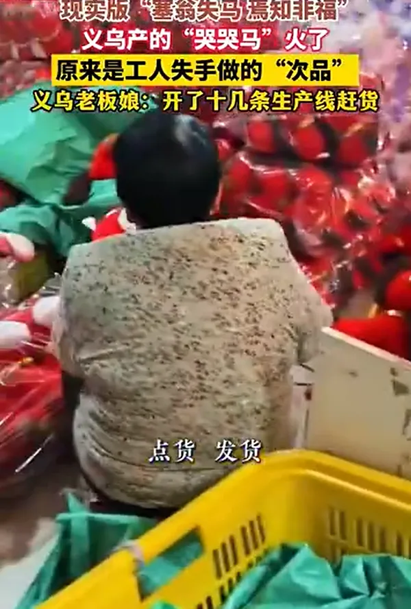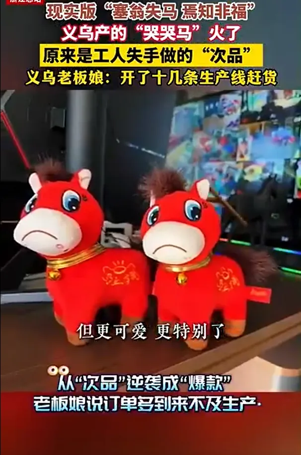 从欧元钱包、电热毯到哭哭马,义乌总能用最野的路子,教全世界做生意。当流水线失误都能被瞬间点燃成现象级爆款,我们不禁感叹:在义乌,根本没有“失误”,只有“待开发的商机”! 下次当你搞砸了什么,不妨想想这匹逆天改命的小马——毕竟,谁能拒绝一个“哭唧唧”却年销千万的励志故事呢?