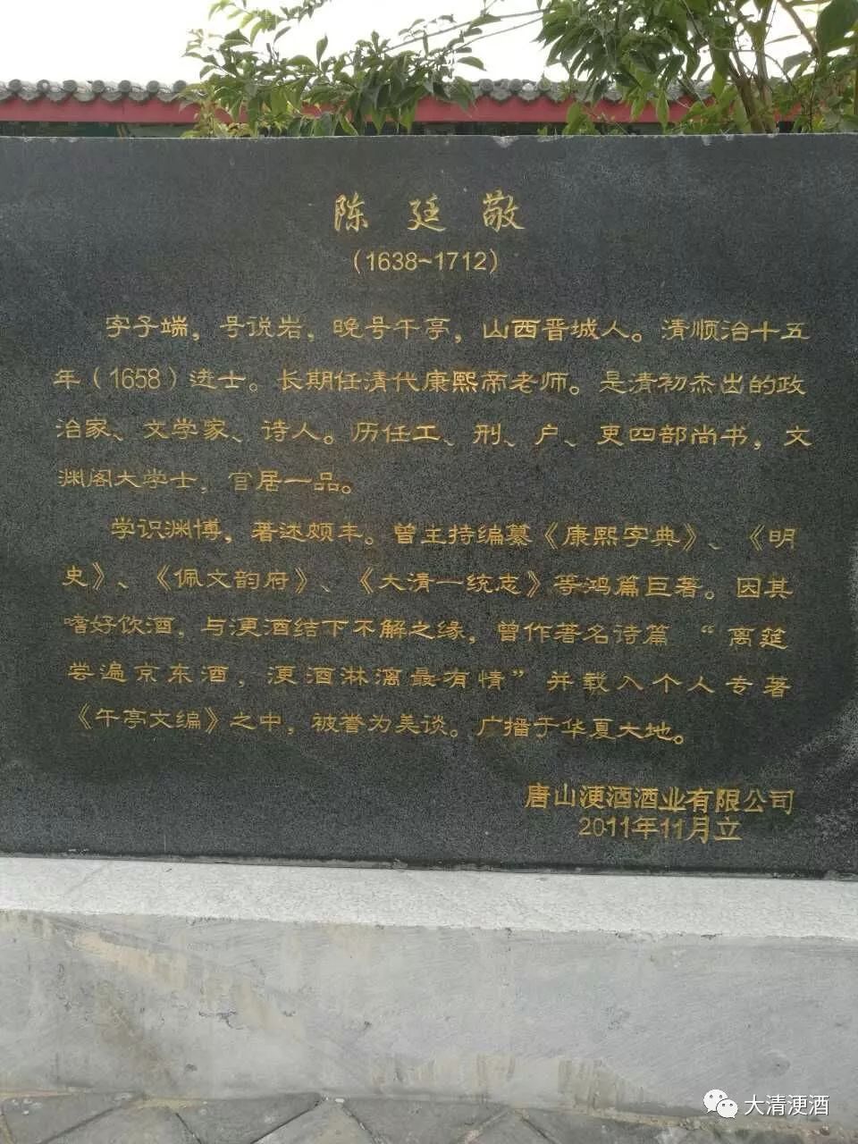 陈廷敬:康熙帝的老师、大清名相。于1687年赋诗“篱延尝遍京东酒,浭酒淋漓最有情”赞美浭酒,记载于清《四库全书》之《午亭文编》卷之三、十三页。