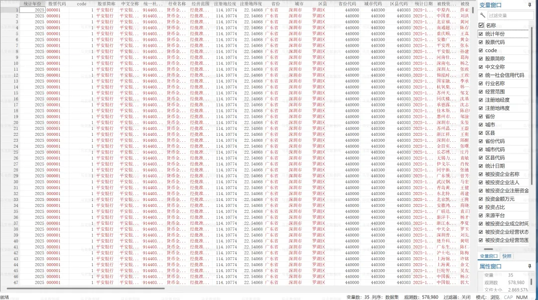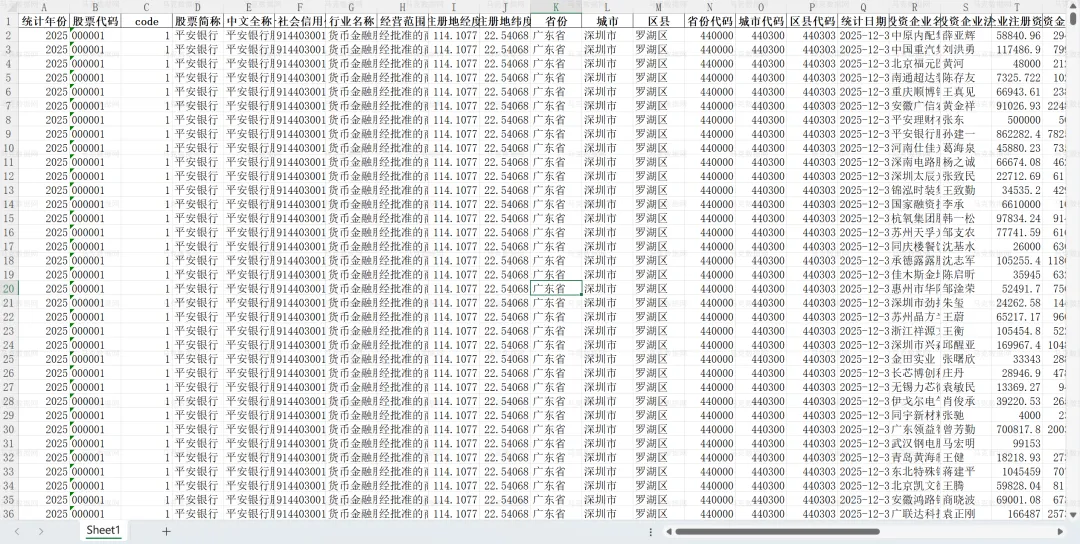 团队借鉴丁如曦等(2025)的方法,根据国家企业信用信息公示系统和上市公司年报,整理、筛选和形成上市公司对外投资明细数据,时间跨度为2020-2025年,含企业名称、投资金额、投资占比、经营范围、地理信息等字段