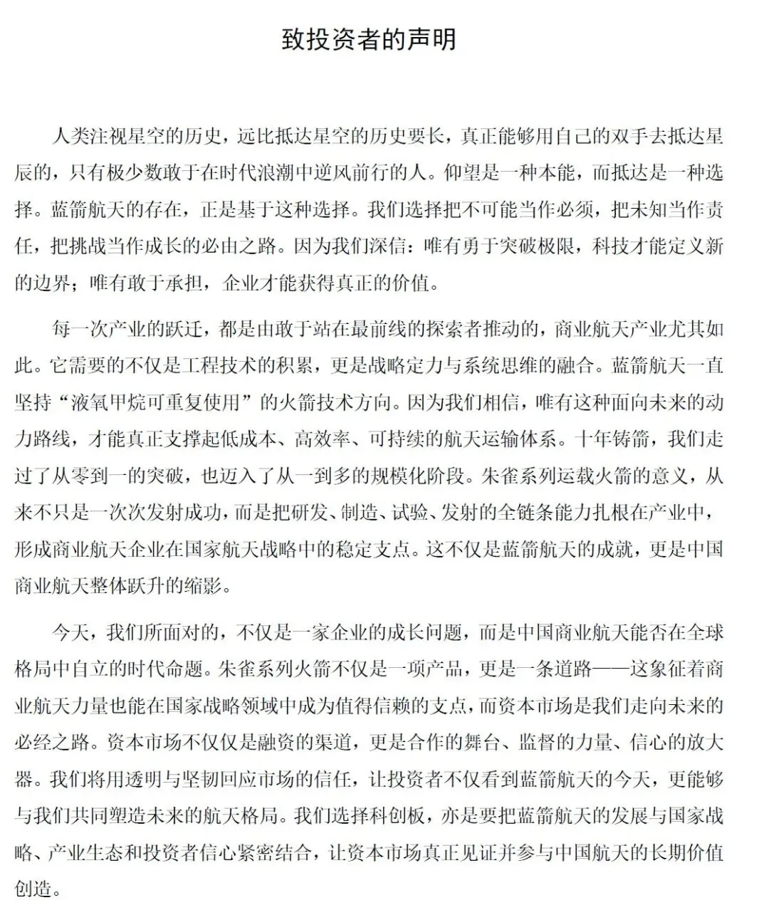 未来发展战略:蓝箭航天是国内领先的商业航天企业,主要从事液氧甲烷发动机及运载火箭的研发、生产并提供商业航天火箭发射服务,致力于构建以中大型可重复使用液氧甲烷运载火箭为核心的“研发、制造、试验、发射”全产业链条,打造航天领域的科技综合体,成为世界一流商业航天企业。
