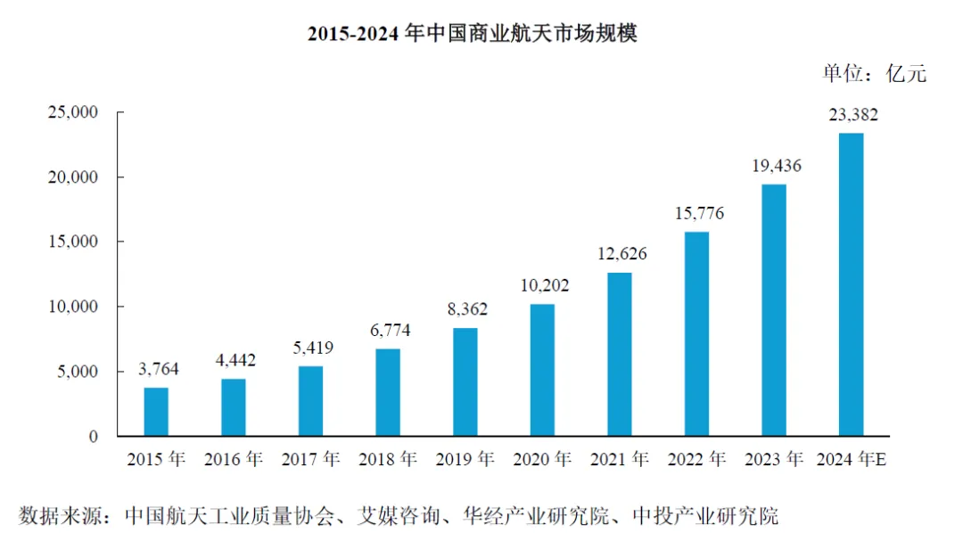 中国商业航天产业呈现出爆发式增长:全行业规模约 2.5–2.8 万亿元人民币,年复合增长率超过 20% ,行业参与主体已超过600 家企业.