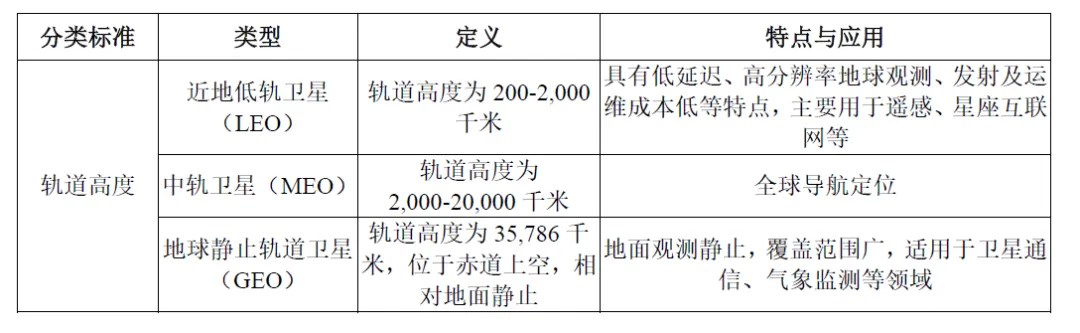 根据卫星轨道 高度不同, 可分为近地低轨卫星( LEO )、中轨卫星 MEO )和 地球静止轨道卫星( GEO )),其中太阳同步轨道卫星 SSO )和极地轨道卫星都属于 近地低轨卫星 。具体情况如下: