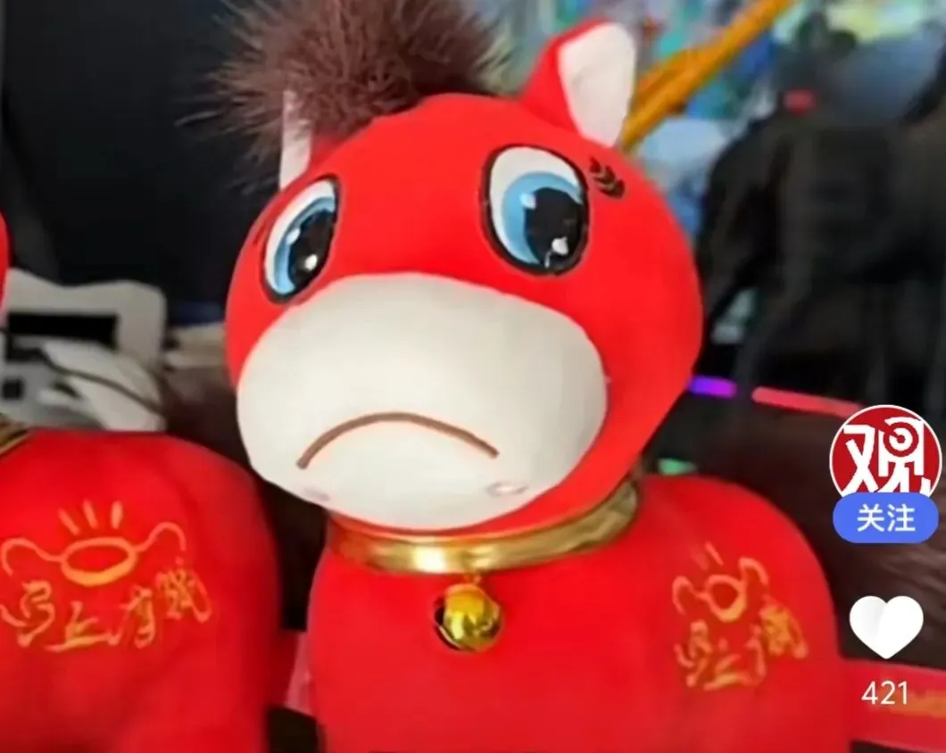 近日,义乌玩具市场跑出一批“黑马”,让众多网友一见钟情。它们是嘴角下弯,眼神委屈巴巴的“哭哭马”公仔。网友一见直呼:“好想抱抱。”