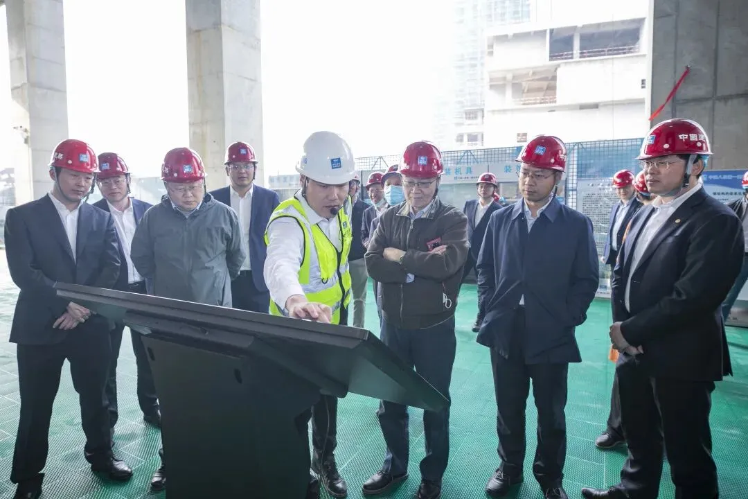 与会专家实地参观了项目供应链管理成果九大展示专区以及党建文化馆、智慧建造体验馆,深入了解项目党建引领、智慧建造、精益管控等工作。