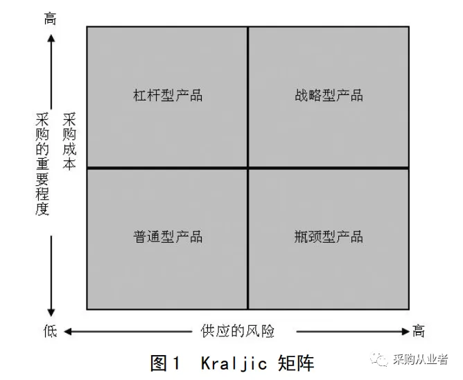 生产物料根据物料细分的方法可以分为普通型产品,瓶颈型产品,杠杆型产品和战略型产品。