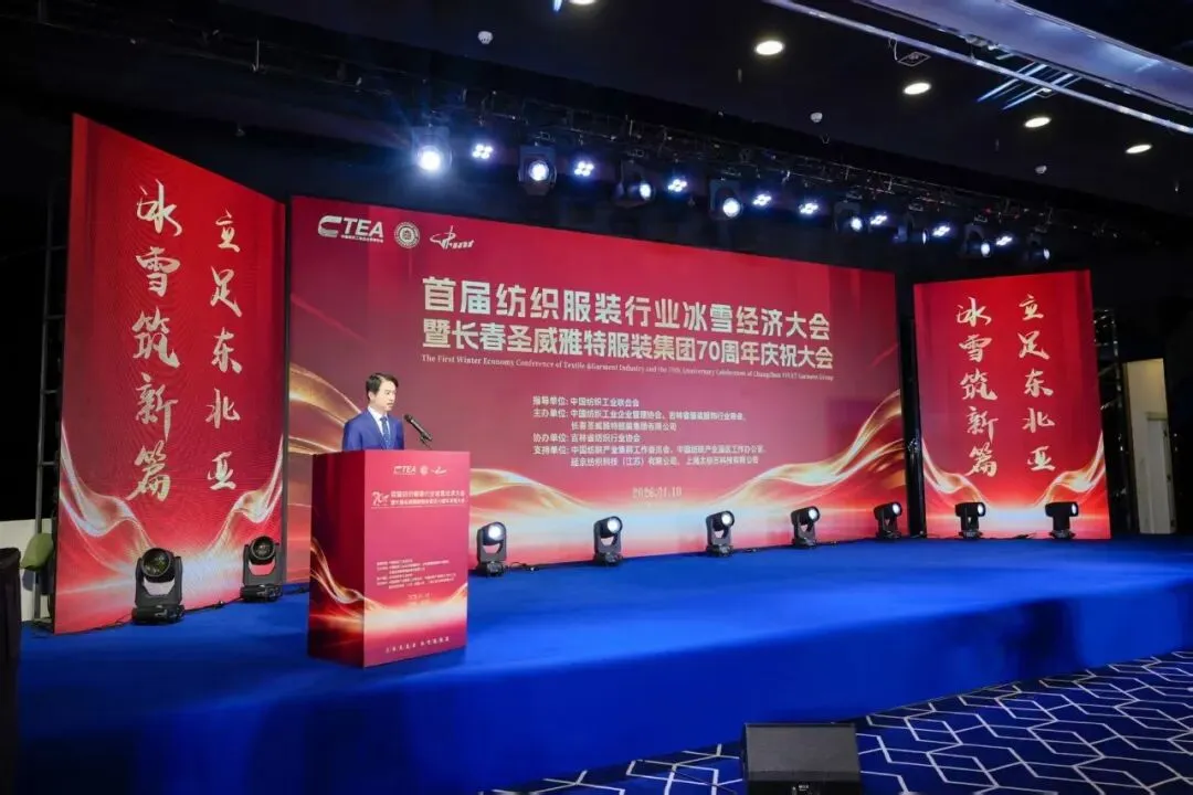 冰雪头条(微信号:bingxuetoutiao)资讯,1月10日,首届纺织服装行业冰雪经济大会暨长春圣威雅特服装集团70周年庆祝大会在吉林长春成功举办。大会汇聚政府领导、行业领袖、专家学者、企业代表及媒体嘉宾,共商纺织服装行业与冰雪经济融合发展大计,同贺圣威雅特集团七十华诞。