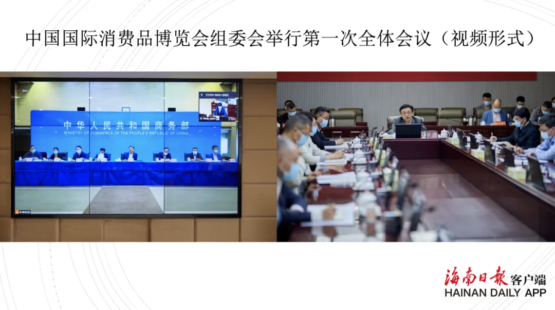 商务部和海南省人民政府将于2021年5月7日至10日在海口共同举办首届中国国际消费品博览会。2月8日上午,中国国际消费品博览会组委会以视频会议形式举行第一次全体会议,组委会主任委员、商务部部长王文涛,组委会主任委员、省长冯飞分别在北京、海南会场出席。