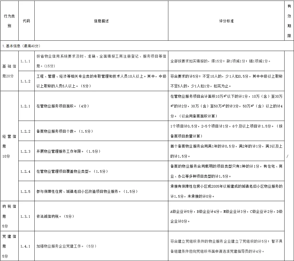 (一)企业基本信息,是指反映物业服务企业基本情况的客观性信息,主要包括企业注册登记信息、经营业绩信息、纳税信息、党建工作信息等。