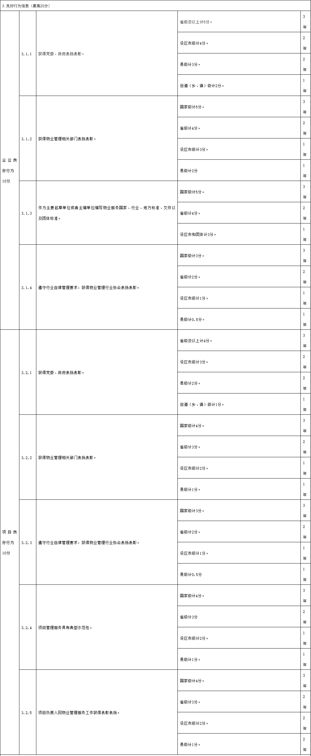 (三)良好行为信息,是指对物业服务企业信用状况判断产生积极影响的信息。主要包括物业服务企业模范遵守法律法规和政策规定,经营管理与物业服务工作受到表彰表扬等信息。