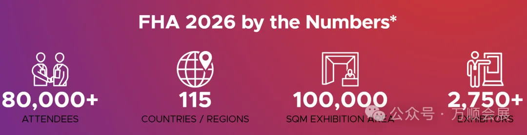 2026年Food&Beverage+HoReCa将完美融合,展会将以一种震撼的方式带回标志性的FHA展会,通过扩大展示,企业可以期待发现大量的烹饪创新、尖端的酒店解决方案和无尽的社交机会!