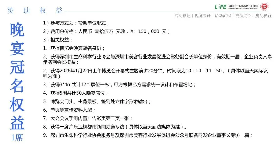2025年10月16日举办的深圳市生命科学行业协会三届一次会员代表大会上,在相关政府部门领导及上级联合党委的见证下,深圳市生命科学行业协会与深圳市美容行业发展促进会已互认为“常务副会长团体单位”。双方定于2026年1月22日全体共同举办2026年湾区生命科学博览会暨CGT微生态创新大会,为办好本次大会,进一步加强双方理事单位以上企业融合互惠互利健康合规发展,通过本次博览会理事以上单位企业共同亮相。加深彼此会员企业之间的互信互利共同走向美好前景的新举措,也开创了深圳市行业组织与产业协同发展、自我治理的先河,通过协会联动、政策支持和产业链协同,已形成生命科学赋能美容健康产业的创新生态,未来将继续深化技术研发与国际化布局。