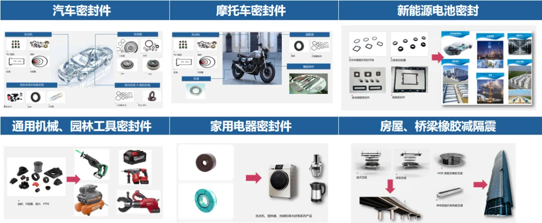公司主营高性能橡胶密封及高性能橡胶减隔震等产品,广泛应用于通用机械、摩托车、汽车、新能源电池、家用电器和公路桥梁、大型公用建筑、轨道交通等行业,主要产品摩托车油封在国内市场占有率超60%。国内摩托车销售前十名企业大长江、隆鑫、宗申、新大洲本田、五羊本田等均将鑫辉科技作为同类密封件首选供应商,部分同类采购占比达到60%-70%,其中大长江企业授予鑫辉科技最佳供应商称号及质量先进奖荣誉。3、团队及研发情况
