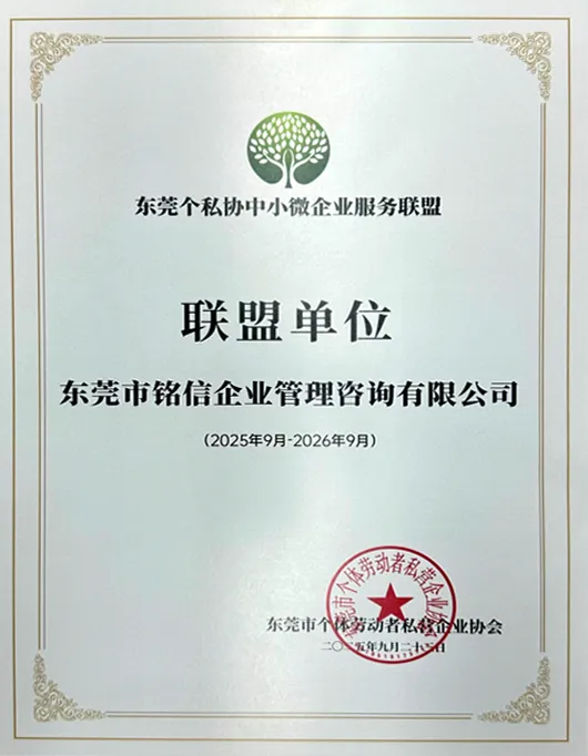 作为连续多年获得广东“代理记账”行业协会授予的最具“竞争性”的百强企业,公司扎根财税行业二十年,东莞市铭信企业管理咨询有限公司已树立了行业内的领先地位与深远的影响力,凭借对行业趋势的精准把握以及对客户需求的深刻理解和细致入微的服务,铭信成为了众多企业在财税管理方面的首选合作伙伴。铭信始终秉承专业、创新、诚信的服务理念,不断提升自身实力,拓展业务领域,为众多企业提供优质的财税服务,为行业发展贡献优质的力量,赢得了广大客户的高度认可与赞誉。