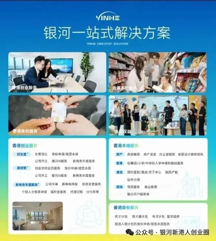 购买银河【好生意·真经营】服务,你将拥有银河7大板块服务,助您拿到香港身份、子女赴港读书、创业盈利、顺利续签转永居。银河凭借十几年香港服务经验,从香港身份申请材料打磨,到香港公司真实运营规划,再到续签转永居关键节点把控,每一步都有专业团队护航,让你既顺利拿身份、子女享优质教育,又能依托香港优势开拓海外市场,实现 “身份 + 事业” 双赢!