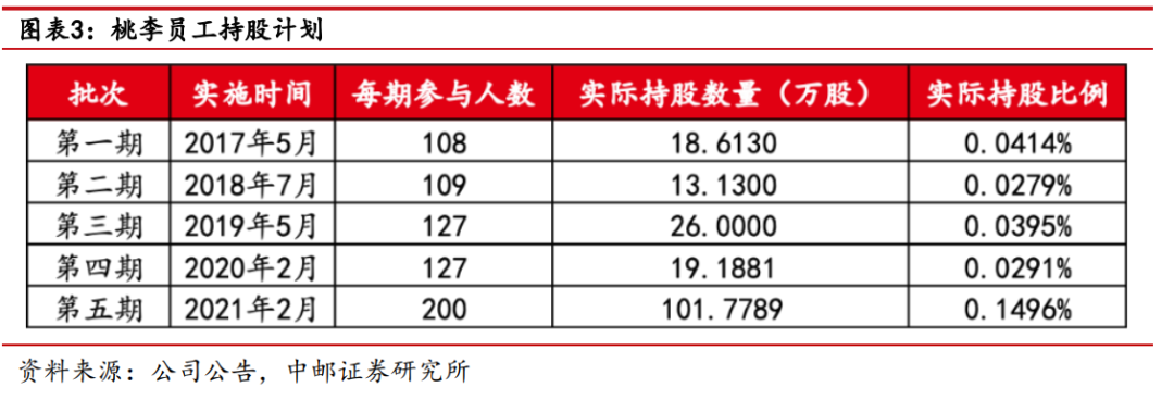 公司实施多次员工持股计划,绑定公司和员工利益。公司为激励员工设立员工持股计划,合计持股占总股本的1.71%。公司2017年后多次发起员工持股计划,重视对员工的激励与培养,利益绑定下核心员工稳定有助于公司平稳运营。