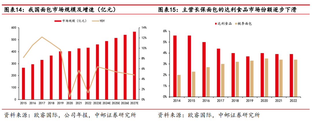 3、烘焙行业:短保烘焙持续增长,桃李稳居短保龙头