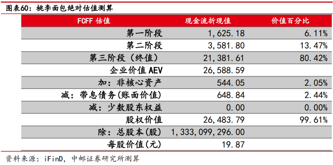 根据绝对估值法,假设公司第二阶段持续6年,2025-2030年增长率为7%,2031年起进入永续增长阶段,永续增长率2%。同时,根据资本结构和融资成本,计算未来WACC为5.86%,结合第一阶段2023-2025年盈利预测,计算得出公司当前合理股价为19.87元。