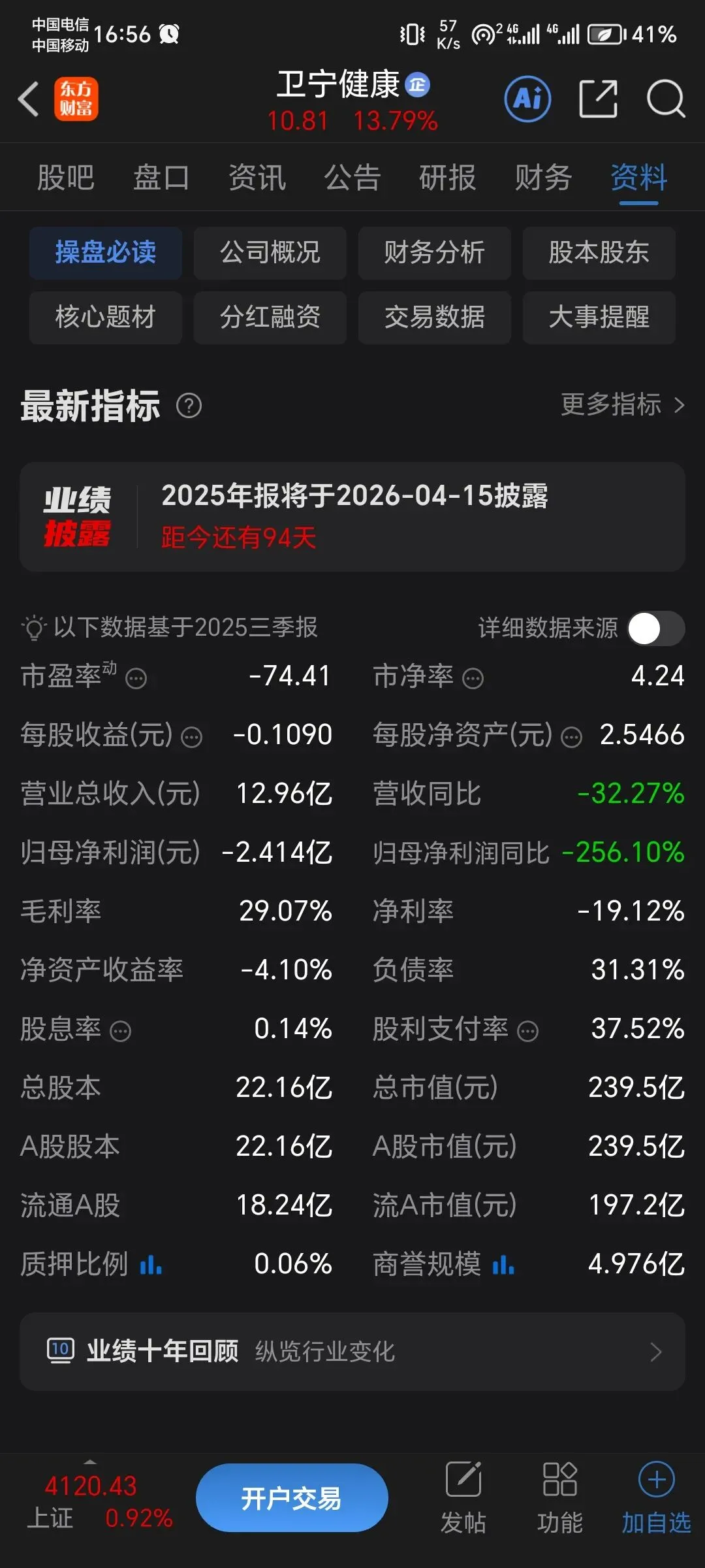 公司尚未发布 2025 年年度业绩预告,结合前三季度数据看,业绩短期承压明显:前三季度营收 12.96 亿元(同比 - 32.27%),归母净利润 - 2.41 亿元(同比 - 256.10%),主要系 WiNEX 产品交付初期实施成本增加、项目验收延迟及互联网医疗业务收缩所致。