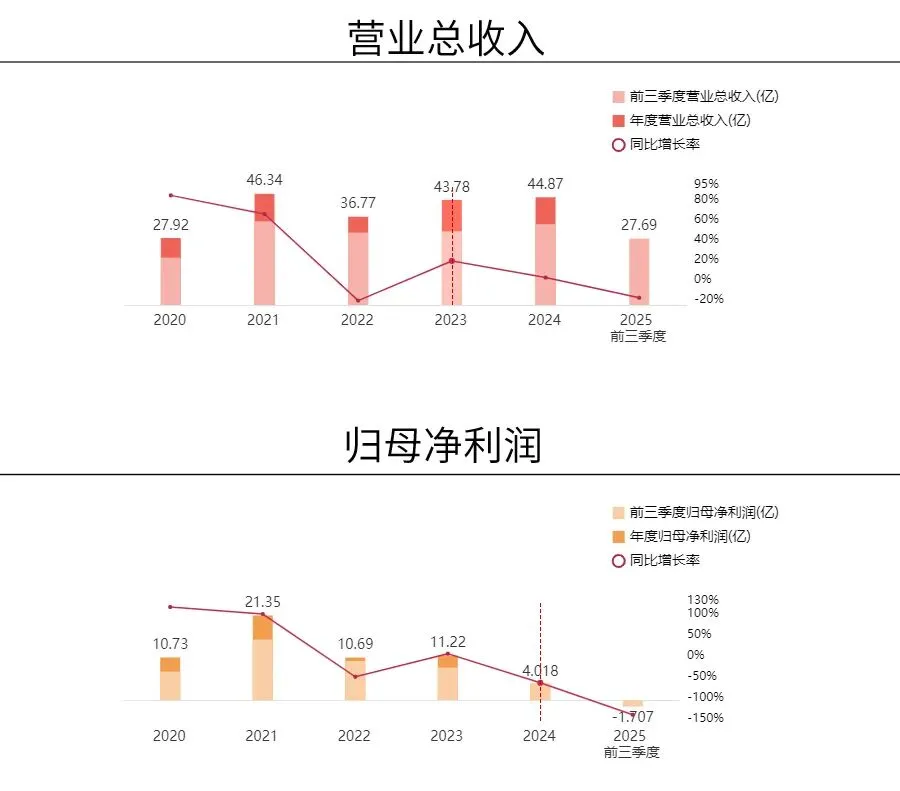 2025 年前三季度营收 27.69 亿元(同比 - 17.77%)、归母净利润 - 1.71 亿元(同比 - 140.13%),主要受芯卓产线折旧、产能爬坡初期成本高企及市场竞争影响。不过 2025 年 Q3 营收环比增长 12.36%,净利润亏损环比收窄 76.84%,毛利率压力边际改善,显示经营逐步向好。