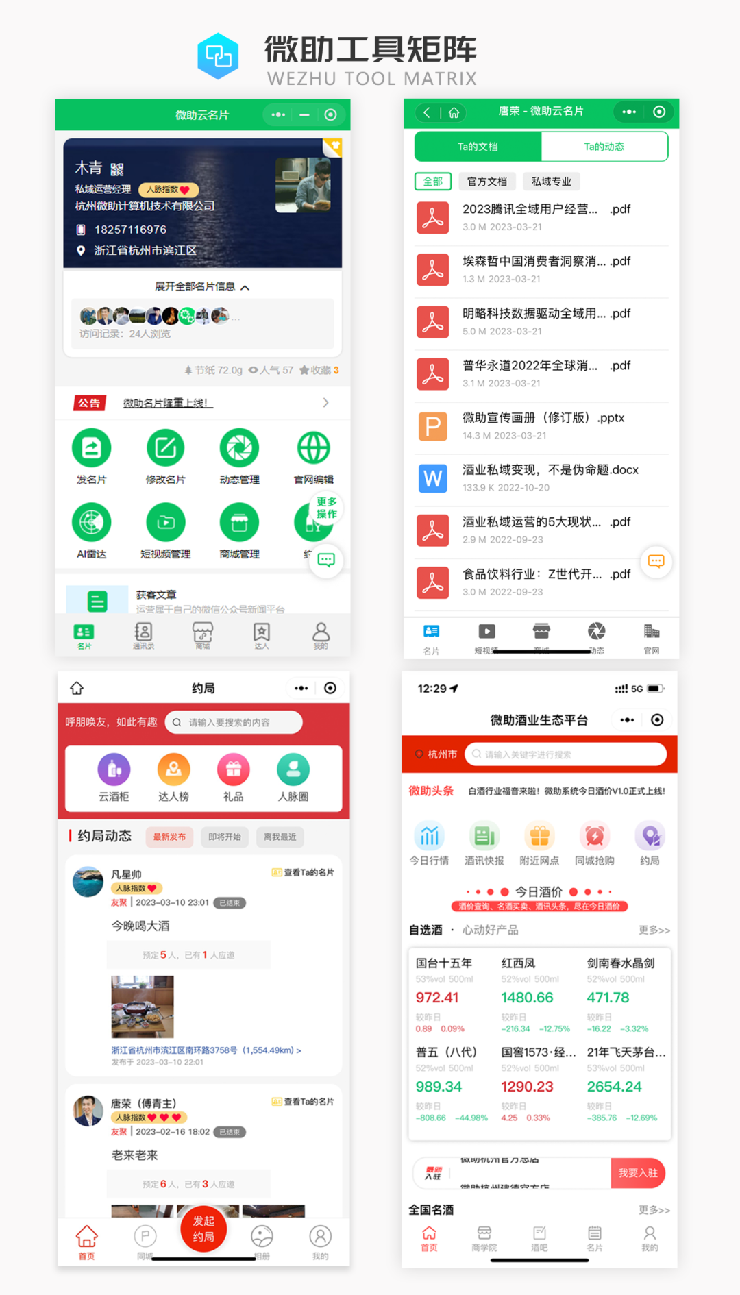 据悉,这次发布的微助工具矩阵是由杭州微助计算机技术有限公司研发,团队核心由有着20年互联网研发实战落地经验的行业专家、来自阿里、滴滴等大厂的资深架构师组成,涵盖了酒业行情、资讯内参、商城、酒吧(论坛)、约局、云名片、云课堂、SCRM等系列工具组成,涵盖酒业全场景应用,这一系列工具将成为行业未来的生产力工具,将大幅度地提升厂商、终端的生产效率和效益。在这一天,无论是现场的参会者还是远程观看直播的观众,都将领略到它们的神奇。让我们共同目睹这一系列生产力工具的诞生,同时,微助云名片、微助约局、微助云课堂等必备工具将限时免费开放体验。