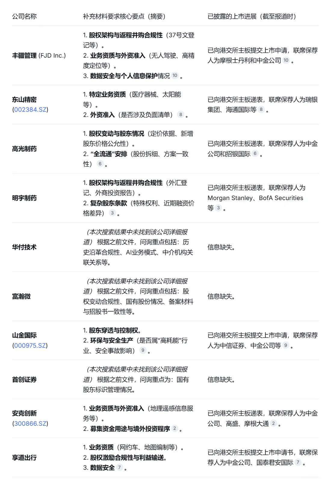 一份 “补考通知单” 。这10家公司向证监会国际司提交了境外上市(比如去香港、美国)的备案材料,但材料不完整或没说清楚,监管列出了问题清单,要求他们补充回答,并且必须由律师核查并给出明确意见。