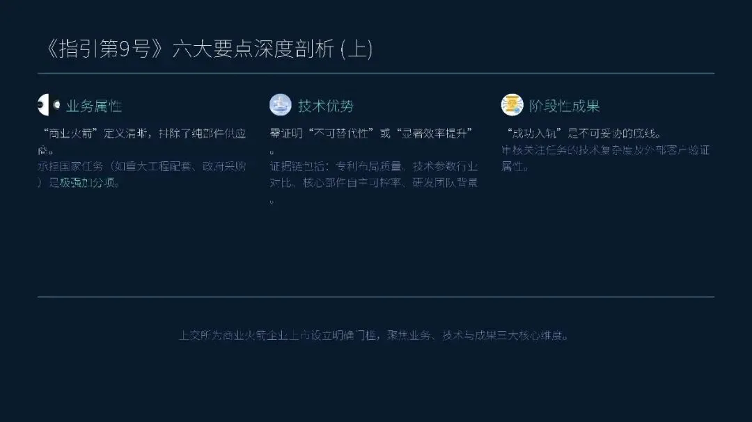 商业火箭企业目前在科创板申请IPO,主要依赖于科创板第五套上市标准。为了精准支持这个行业,上海证券交易所在2025年12月26日发布了专门的《发行上市审核规则适用指引第9号——商业火箭企业适用科创板第五套上市标准》。以下是围绕这份最新指引的实务要点: