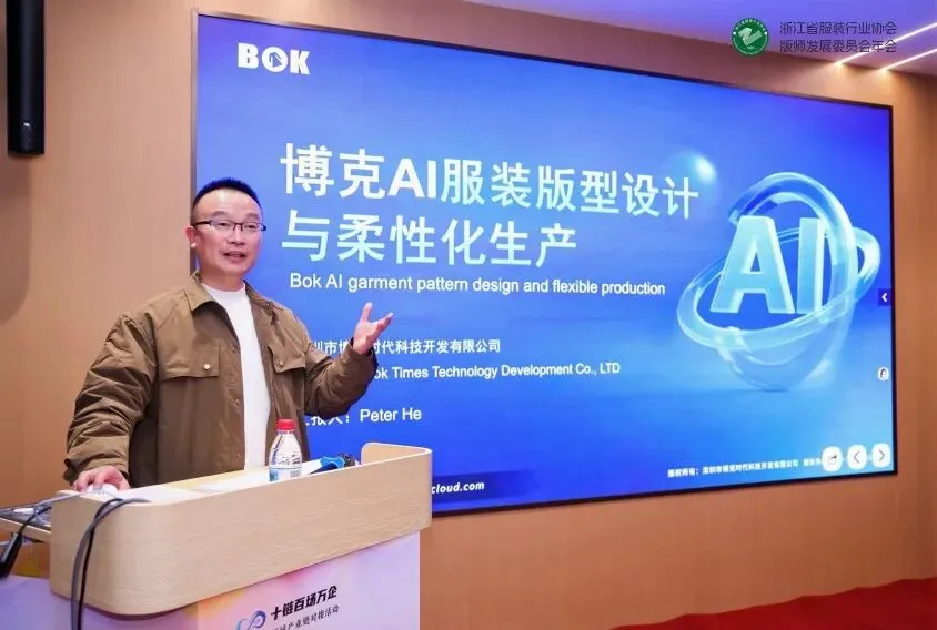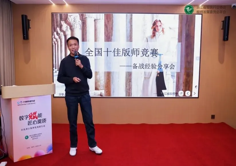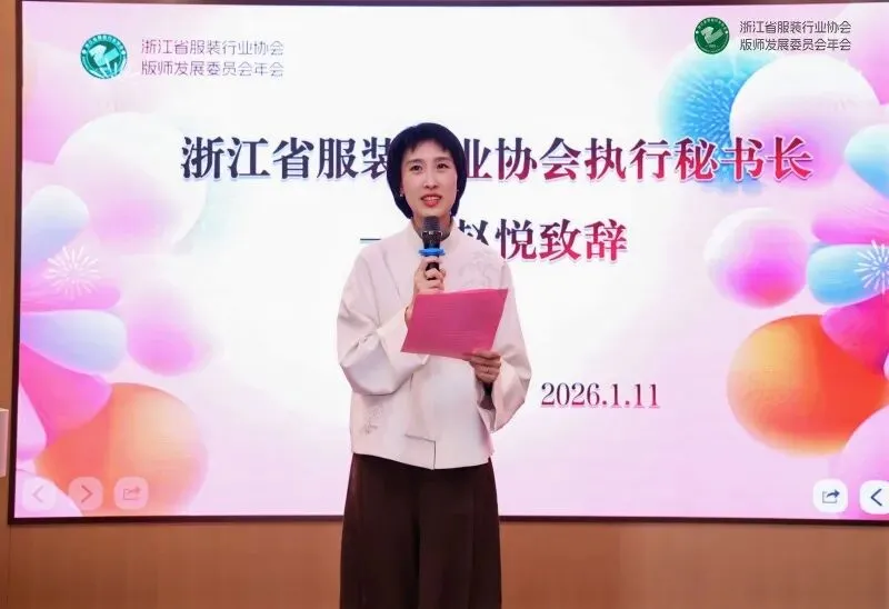 会议伊始,浙江省服装行业协会执行秘书长赵悦在致辞中指出,浙江作为“衣被天下”的纺织服装重地,版师是关键工匠。年会以“数字赋能,匠心提质”为引,推动技术艺术交融、个体生态共进、传统未来对话,让AI等新伙伴延伸手脑,使“版”成产业战略版图。同时,赵秘书长表示,协会是版师最坚实的后盾与家园,将继续支持版师成长,聚力打造代表高品质、高价值、高创新的“浙江版师”金字招牌,使之成为中国服装智造版图上的闪亮坐标。