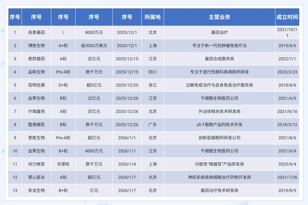 近期,中国CGT(细胞与基因治疗)赛道再掀融资热浪,13家企业密集披露超22亿元,百明信康以D+轮超3亿元、博致生物以A+轮逾3000万美元领跑,北京、上海、江苏三地占据10席,iPSC、CAR-T、基因治疗、外泌体等细分技术全面开花,资本“快进键”已按下,新一轮技术竞速与产业化冲刺正在同步升温。