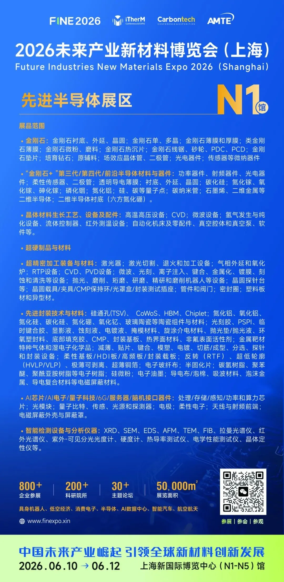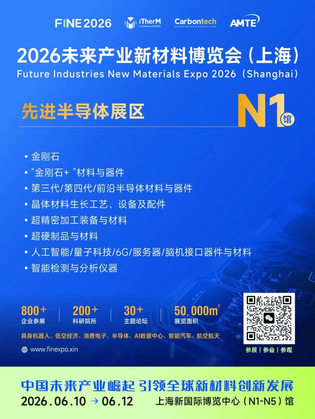 2026未来产业新材料博览会(上海)将于6月10日至12日在上海新国际博览中心(N1-N5馆)盛大举办。本次博览会聚焦未来产业新材料发展,设立先进半导体、热管理技术与材料、先进电池与能源材料、创新企业及成果交易、轻量化高强度与可持续材料五大主题展区,汇聚800+企业、200+科研院所,举办30+场主题论坛,展览规模达50,000平方米,是关注新材料行业趋势、技术交流与产业合作的重要平台。