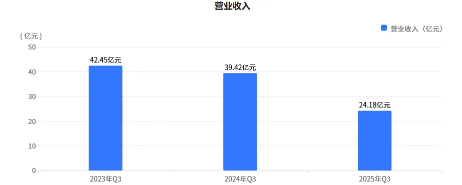 营收层面:业务调整导致规模收缩。前三季度,公司实现营业收入24.18亿元,同比下降26.76%。
