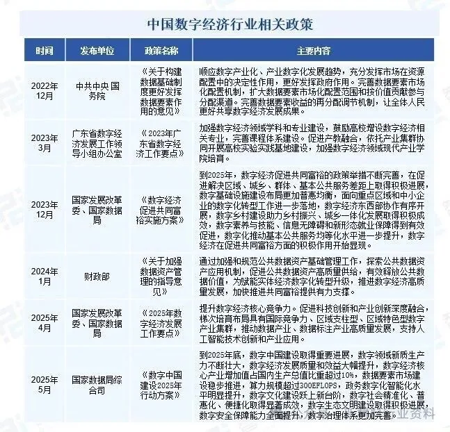 例如,2025年4月,国家发展改革委、国家数据局印发《2025年数字经济发展工作要点》,提升数字经济核心竞争力。促进科技创新和产业创新深度融合,梯次培育布局具有国际竞争力、区域支柱型、区域特色型数字产业集群,推动数据产业、数据标注产业高质量发展,支持人工智能技术创新和产业应用。