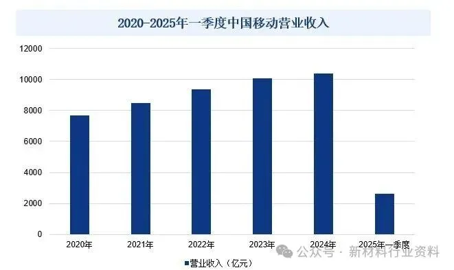 中国移动通信集团有限公司(简称“中国移动”)是一家按照国家电信体制改革总体部署于1999年组建成立的中央企业。公司在2000年在香港和纽约上市,并于2017年进行公司制改制后更名为中国移动通信集团有限公司,成为国有独资公司。作为一家基于GSM、TD-LTE、FDD-LTE制式网络的移动通信运营商,中国移动主要经营移动语音、数据、宽带、IP电话和多媒体业务,并在香港和纽约上市。公司是世界500强企业之一,也是中国500强企业之一。目前,中国移动在5G和宽带上的巨大投入和战略布局,不仅提高了网络速度,更是支撑整个数字经济的基础建设,对自动驾驶、智能家居和工业互联网等领域都具有重要意义。中国移动的领先布局,是整个社会数字化转型的重要推动者,推动未来生活更加智能化、数字化。据统计,2025年一季度中国移动营业收入为2637.6亿元,同比增长0.02%。