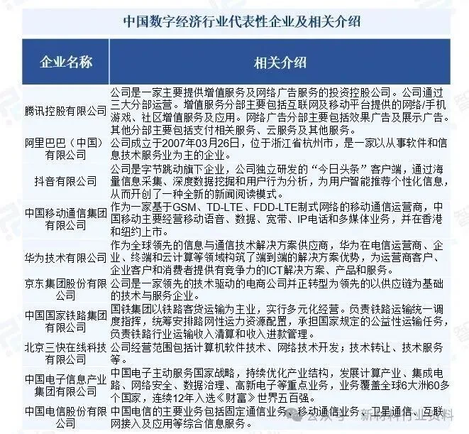 中国数字经济已形成多元化竞争格局,头部企业凭借技术积累和规模优势占据主导地位,其中腾讯、阿里在数字内容和电商领域保持领先,华为、中国移动等通信巨头深耕5G和基础设施,京东、抖音等新兴力量通过差异化创新快速崛起。央企如国家铁路集团、中国电子等加速数字化转型,与科技企业形成竞合关系。整体呈现互联网平台、通信运营商、科技硬件厂商和传统转型企业多维度竞争态势,各企业在技术研发、生态构建和场景落地方面展开激烈角逐,推动数字经济行业持续迭代升级。