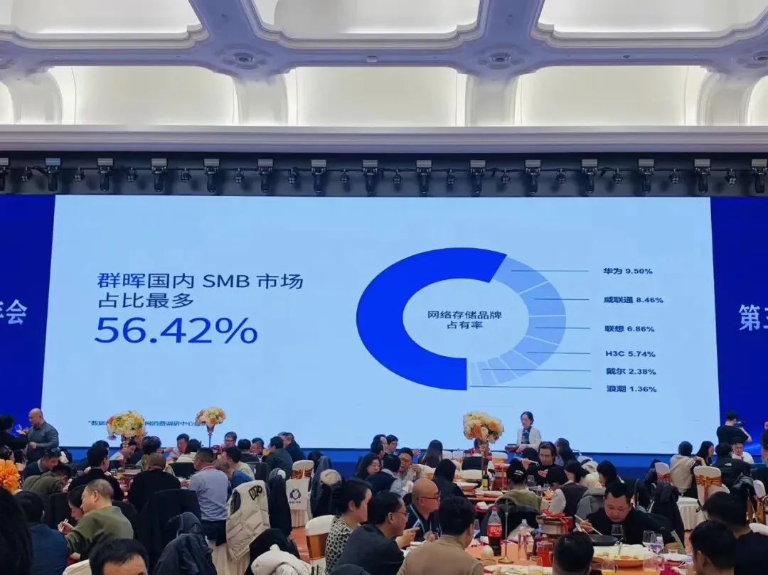 首先映入眼帘的是一组数据,在国内 SMB 网络存储品牌占有率中,群晖以56.42%的占比一骑绝尘,这一数字的背后,是万千企业用户对群晖产品性能、安全性与服务的高度认可。