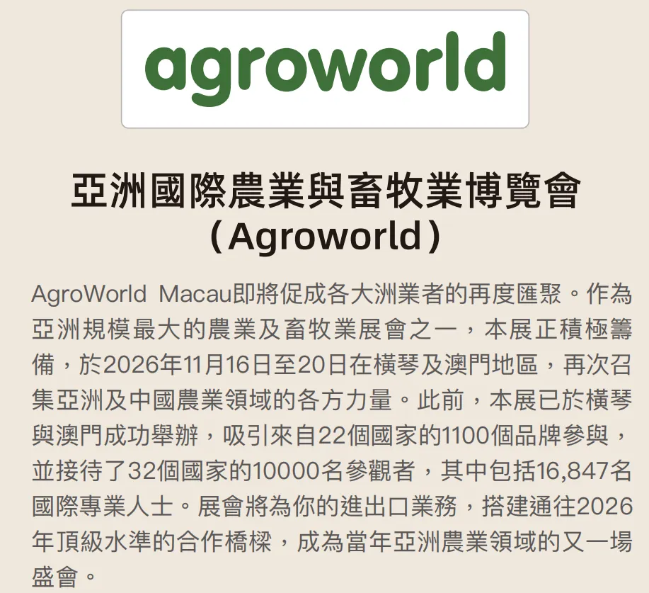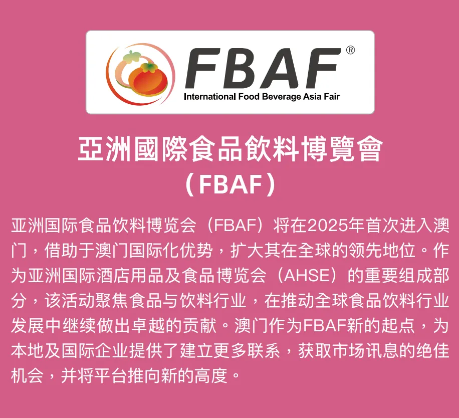 本次展会进一步细分行业领域,精准覆盖上下游产业链,将吸引更广泛的行业参与者齐聚澳门。对于酒店、餐饮、食品饮料及农业领域的企业与从业者而言,这无疑是一场不容错过的行业盛会。