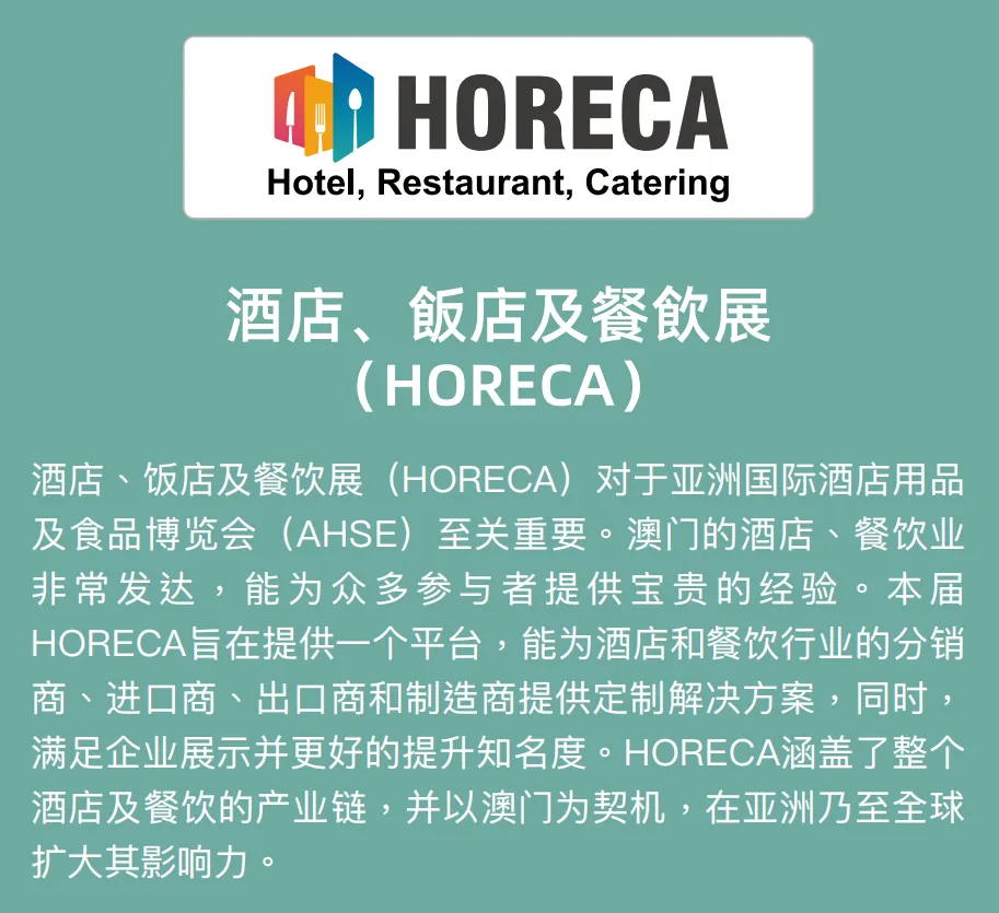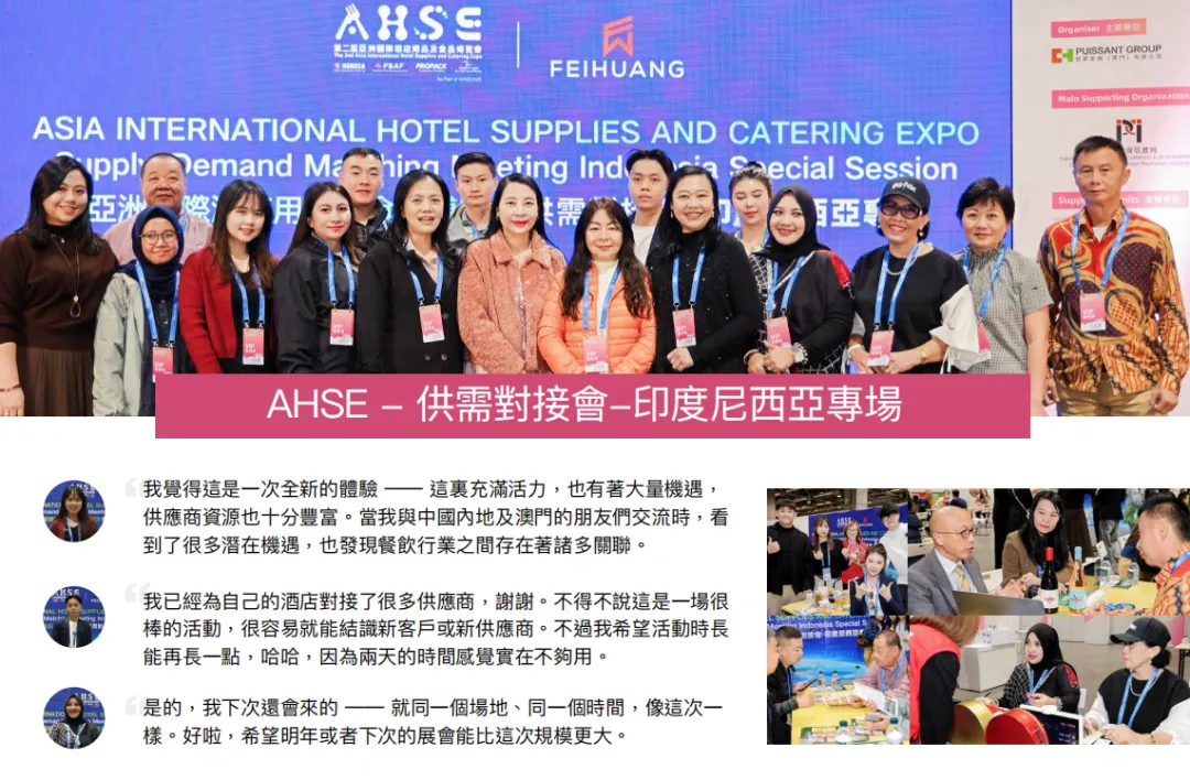 由普新集团(澳门)有限公司主办的AHSE,是目前澳门唯一以酒店、餐饮及食品饮料为主题的国际贸易展览会,其核心宗旨在于加强亚洲各国及地区酒店、餐饮及食品饮料企业间的交流与合作,助力相关企业在全球市场建立影响力。
