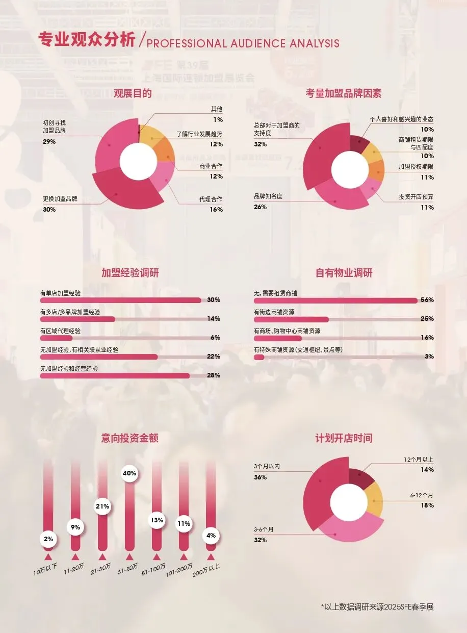 SFE上海特许经营及连锁加盟展作为行业盛会,吸引了来自全国各地的专业观众,涵盖了上海、江苏、浙江、北京、山东、安徽、河南等主要经济区域的投资者。